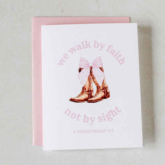 Catholic Encouragement Greeting Card, "Walk by Faith Not by Sight", Cowgirl Boot with Bow