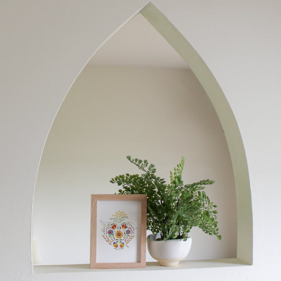 This 5x7 art print beautifully depicts the Immaculate Heart of Mary in a vibrant folk art style, filled with rich meaning and devotion. Centered on a radiant sunflower—symbolizing Christ—the design is floral and feminine, with a traditional spear piercing Mary’s heart. The spear, formed of flowers, is a striking reminder that even from sorrow and suffering, God can bring sweetness and grace.