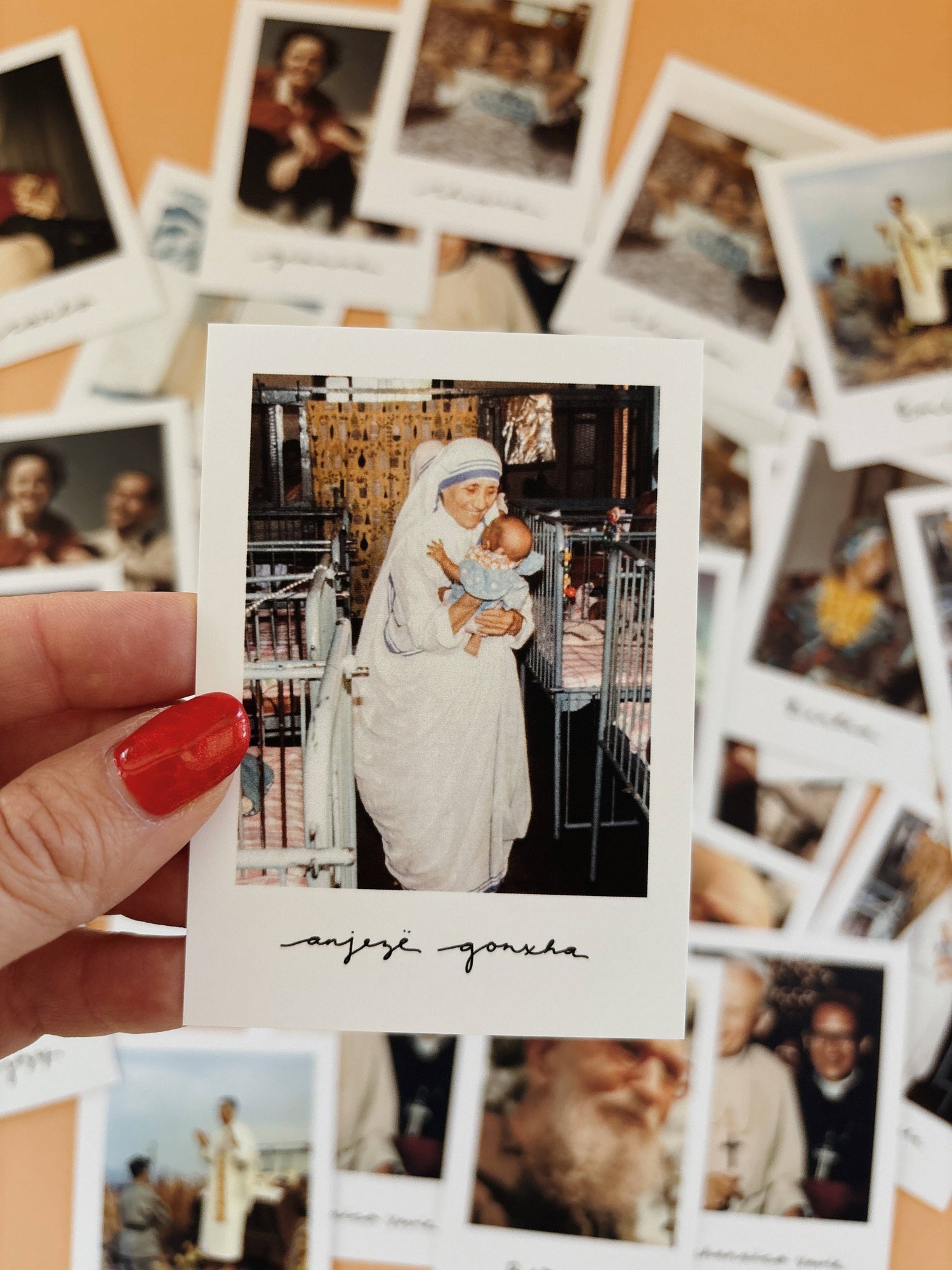 The best-selling Polaroid Mini Saint Prints are now available in full color—bringing the lives of modern Catholic saints to life in a fresh, vibrant way. Each pack includes 10 vintage-style mini prints featuring beloved saints and holy men and women, complete with their birth names written in original calligraphy.