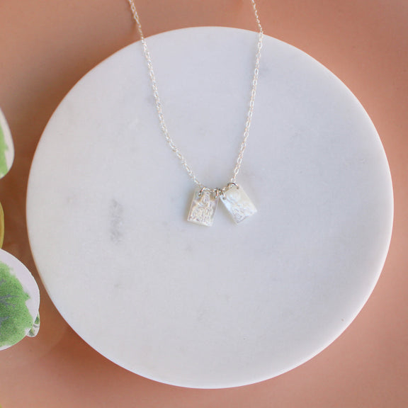 The pendants are paired with a delicate sterling silver chain and finished with sterling silver clasp and jump rings, offering durability and a classic look designed for daily wear. Necklace measures 18 inches.